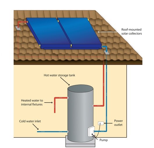 As the water warms inside the collectors, it becomes buoyant and returns up into the storage tank.